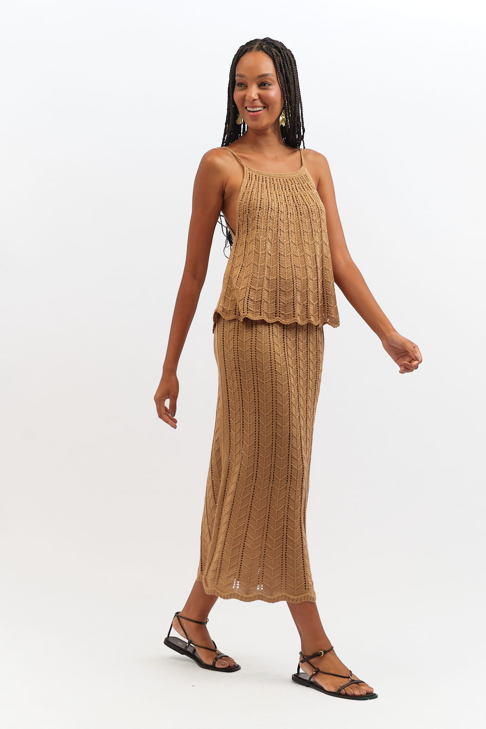 ShopNovidadesConjuntosBlusas e TopsBlusas e TopsBlusa Amarracao Tricot Lurex - Bege