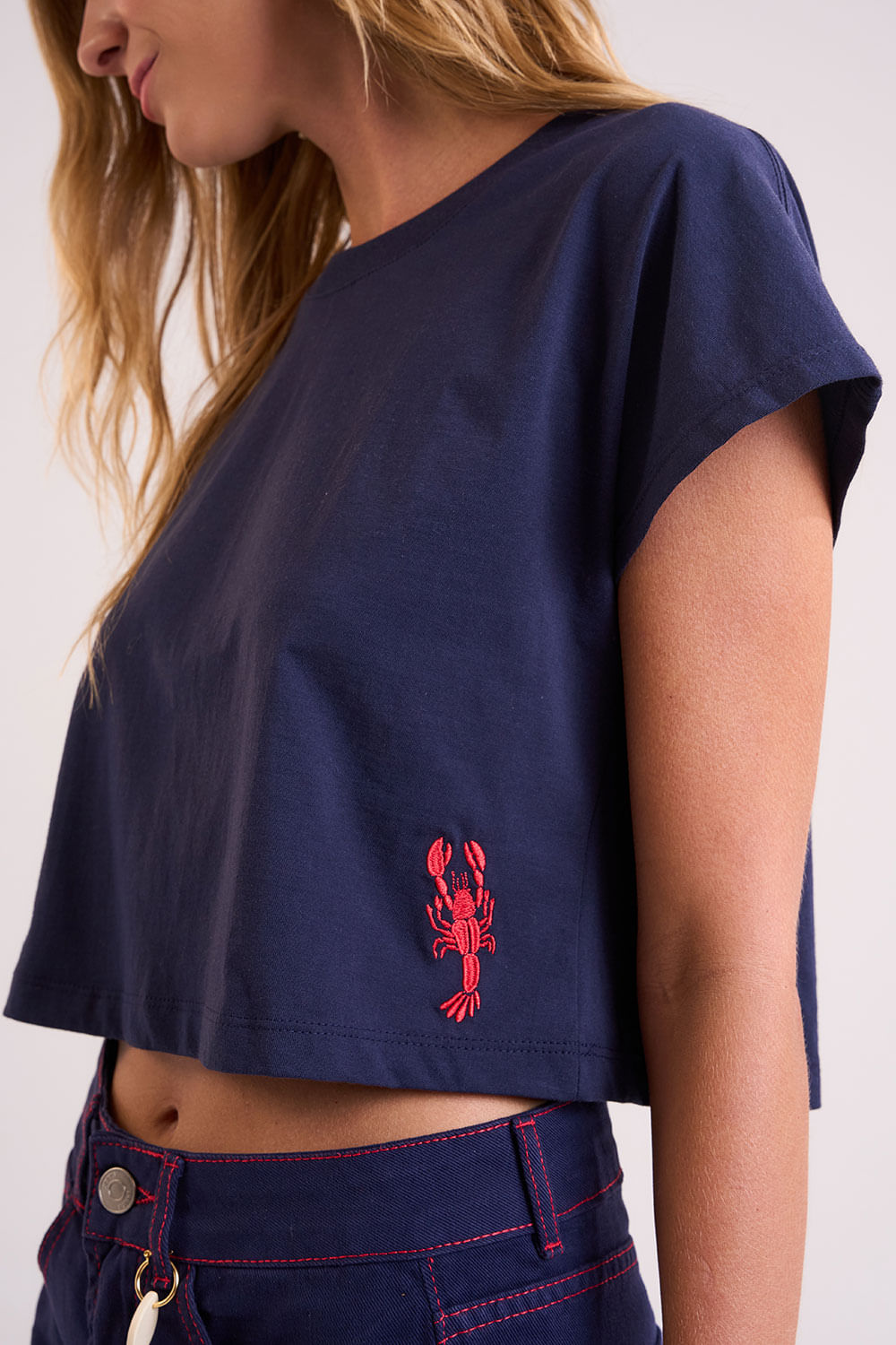 ShopNovidadesBlusas e TopsBlusas e TopsBlusa Bordado Lagosta - Azul Marinho