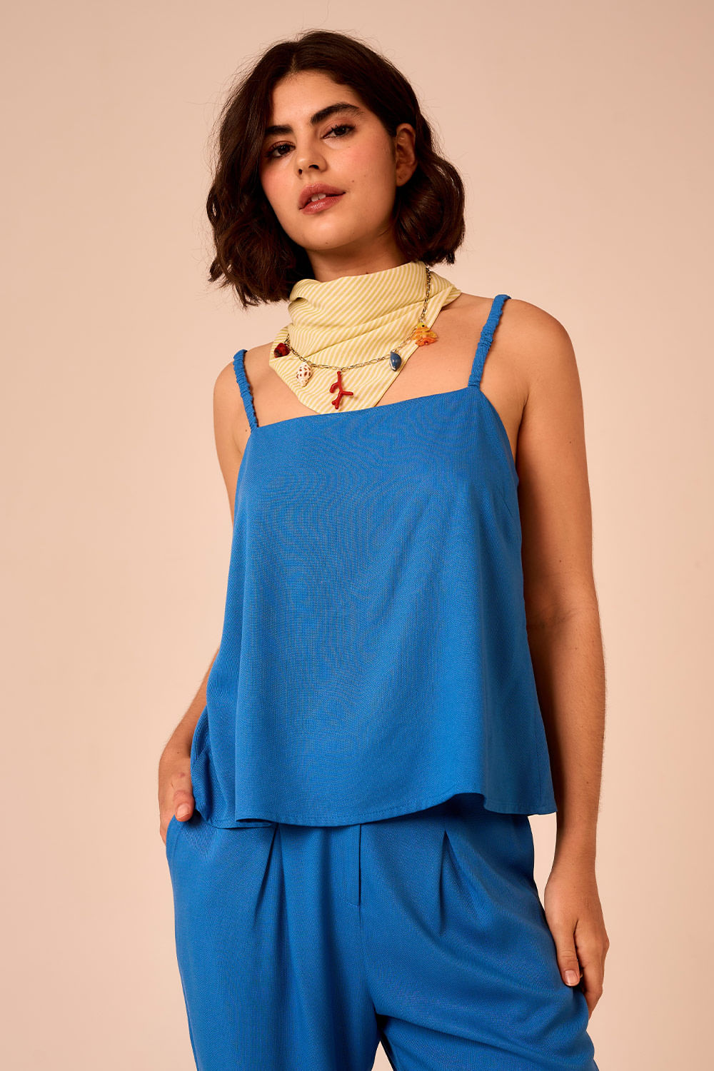 Blusa Celeste possui shape quadrado e alças em elástico que garantem conforto, o modelo se completa com fecho posterior em dois botões delicados. Ideal para compor looks básicos com bossa.