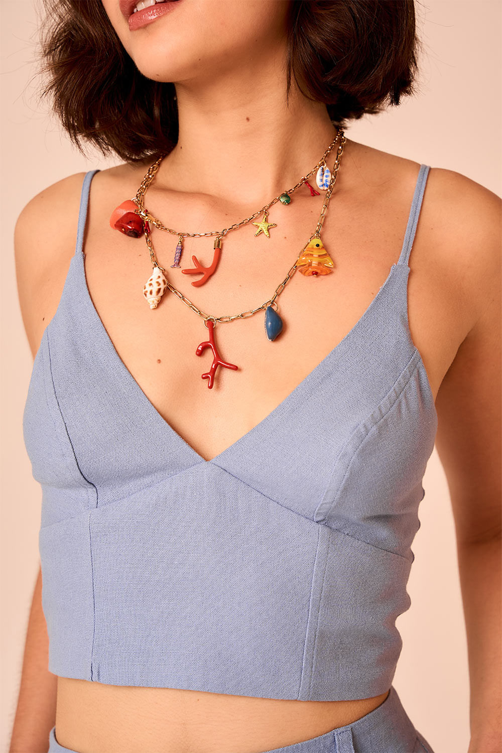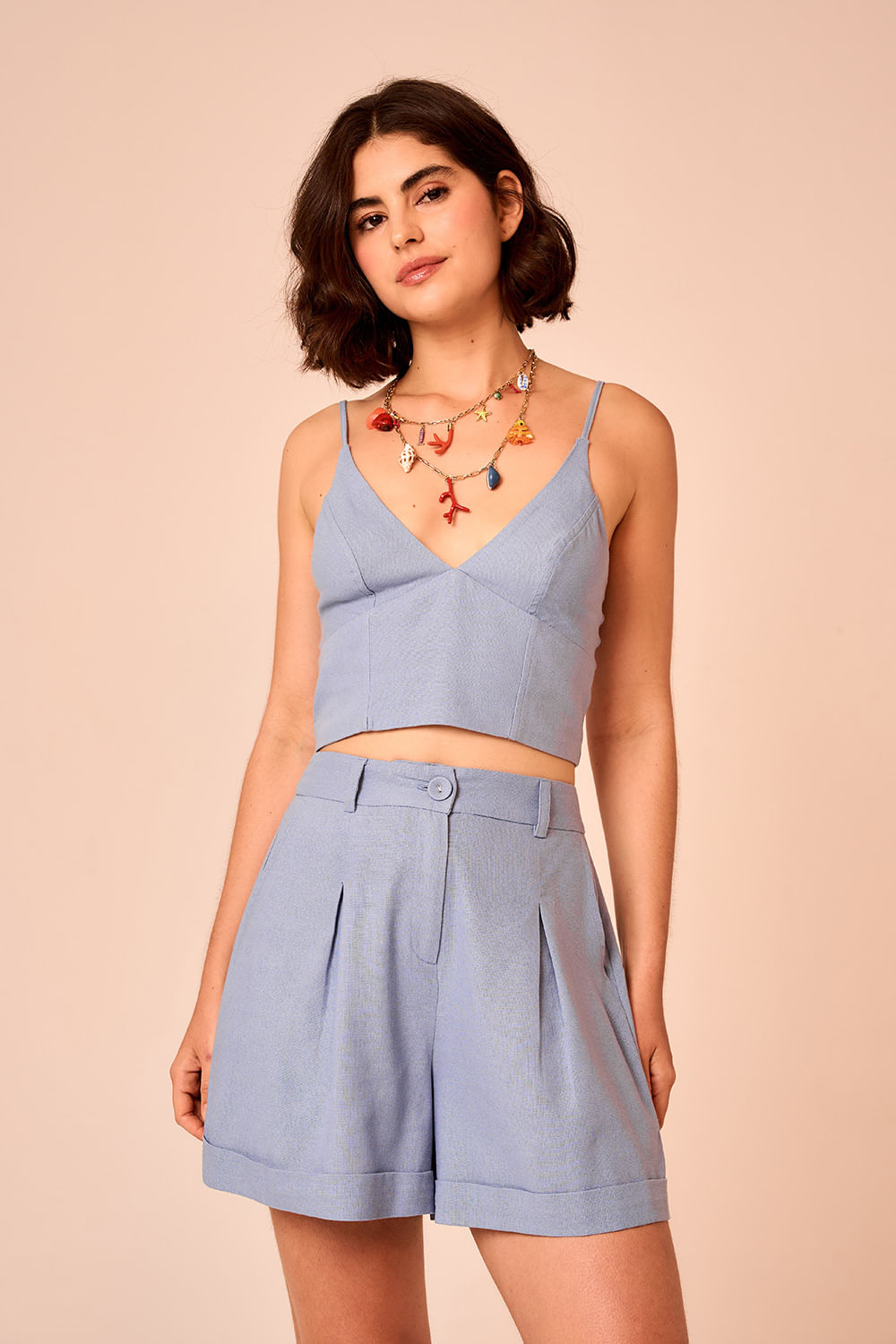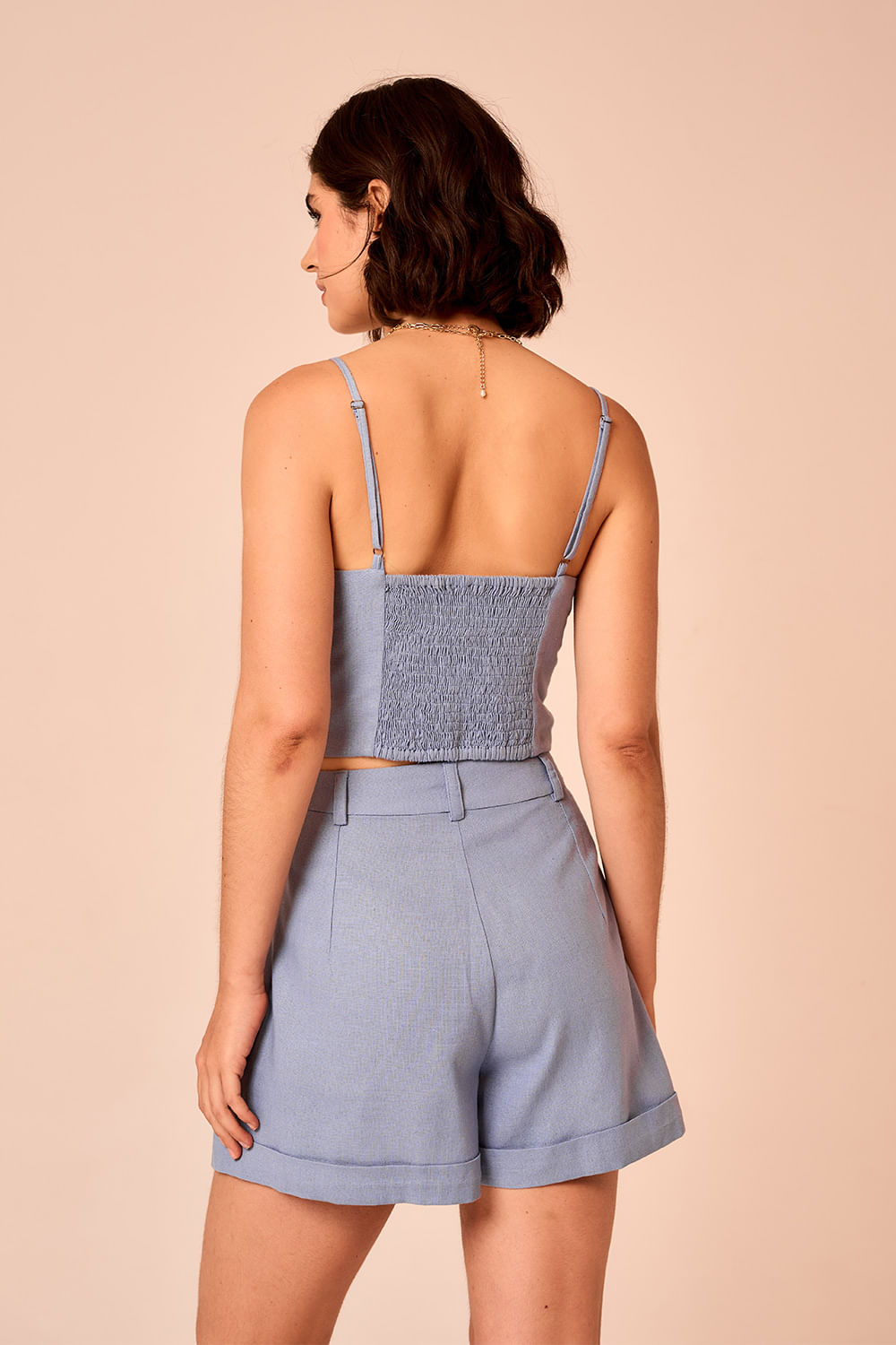 Blusa Jasmim possui decote em V que valorizando o busto, alças reguláveis e lastex nas costas. Uma peça versátil para composições leves.