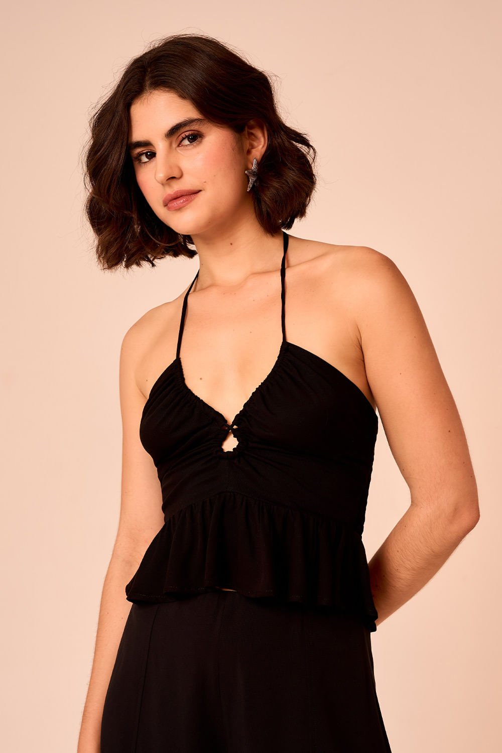 Blusa Luar possui amarração no pescoço com ponteiras, abertura delicada no busto e costas com lastex para o ajuste ideal. Um modelo leve para os dias quentes de verão.