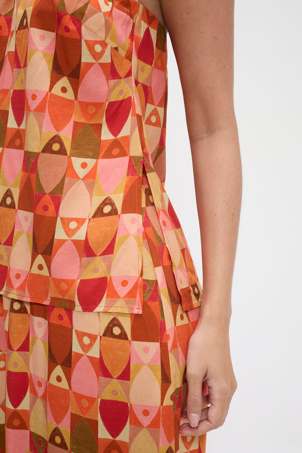 Blusa Pescare traz modelo sem alça e um toque moderno com fendas laterais que adicionam leveza e movimento. O caimento fluido permite conforto em diferentes ocasiões, do dia a dia a eventos informais.