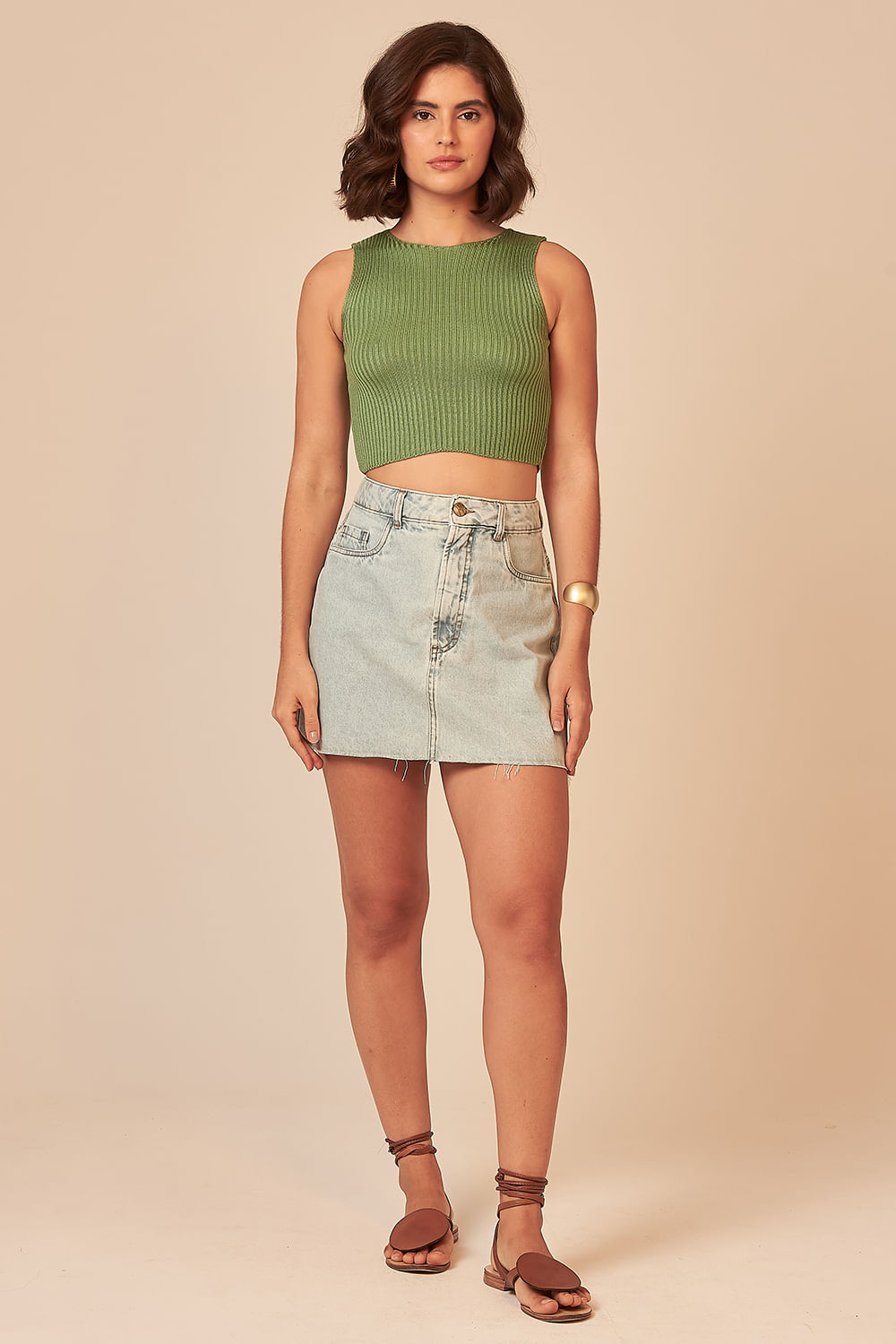 Blusa tricot minimalist de tricot canelado e sem mangas e com gola redonda.