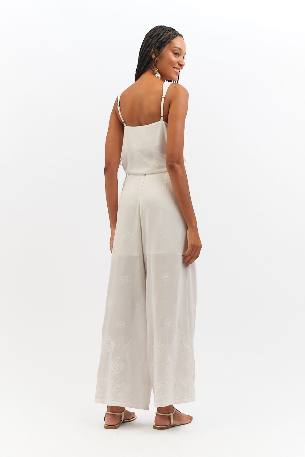 Calça Bordado Geometrico - Branco