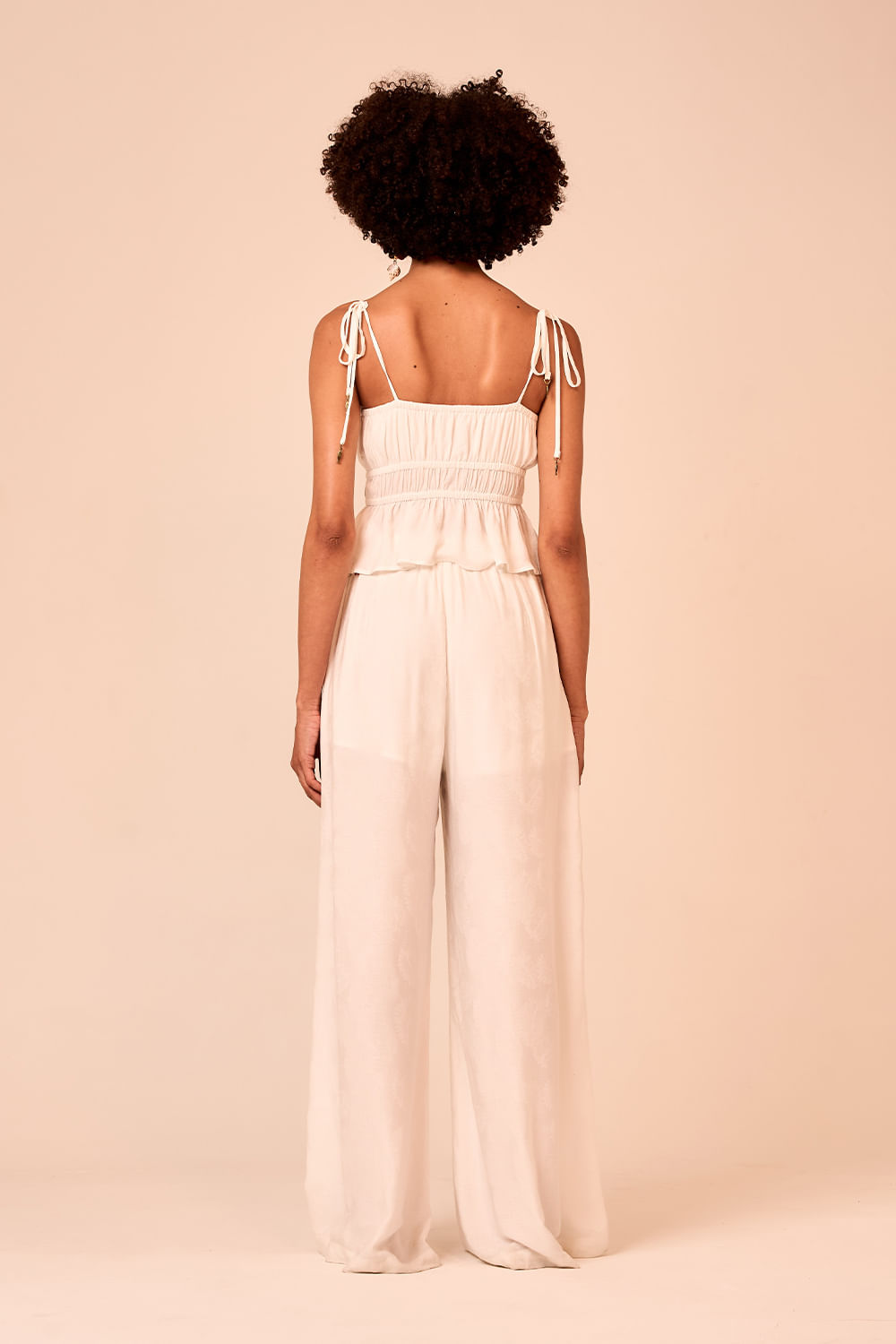Calça Jacquard Folha é ampla e fluida. Modelo pantalona traz cós de elástico que garante conforto absoluto. Um modelo descomplicado que acompanha o ritmo leve dos dias.