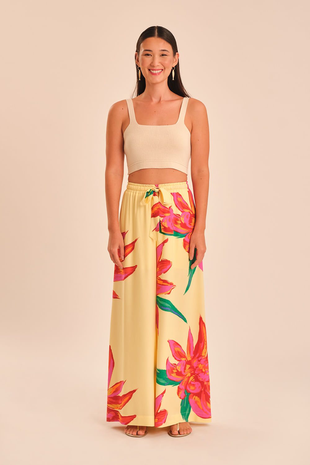 Calça Pantalona Floral Bold - Estampado