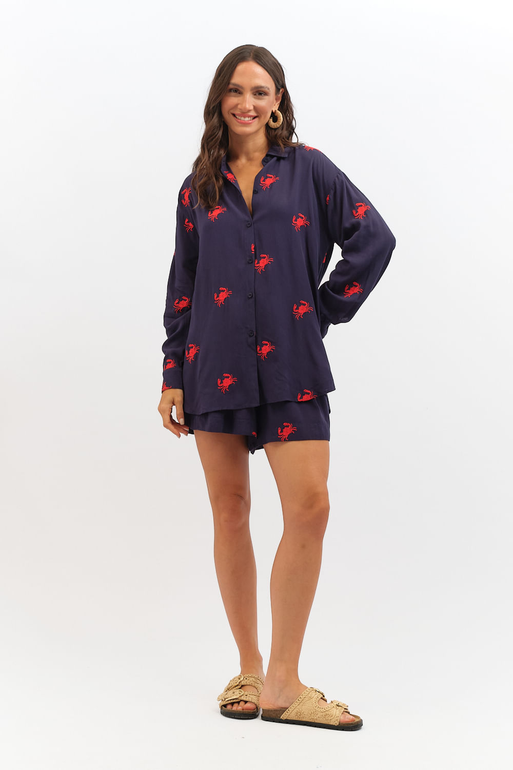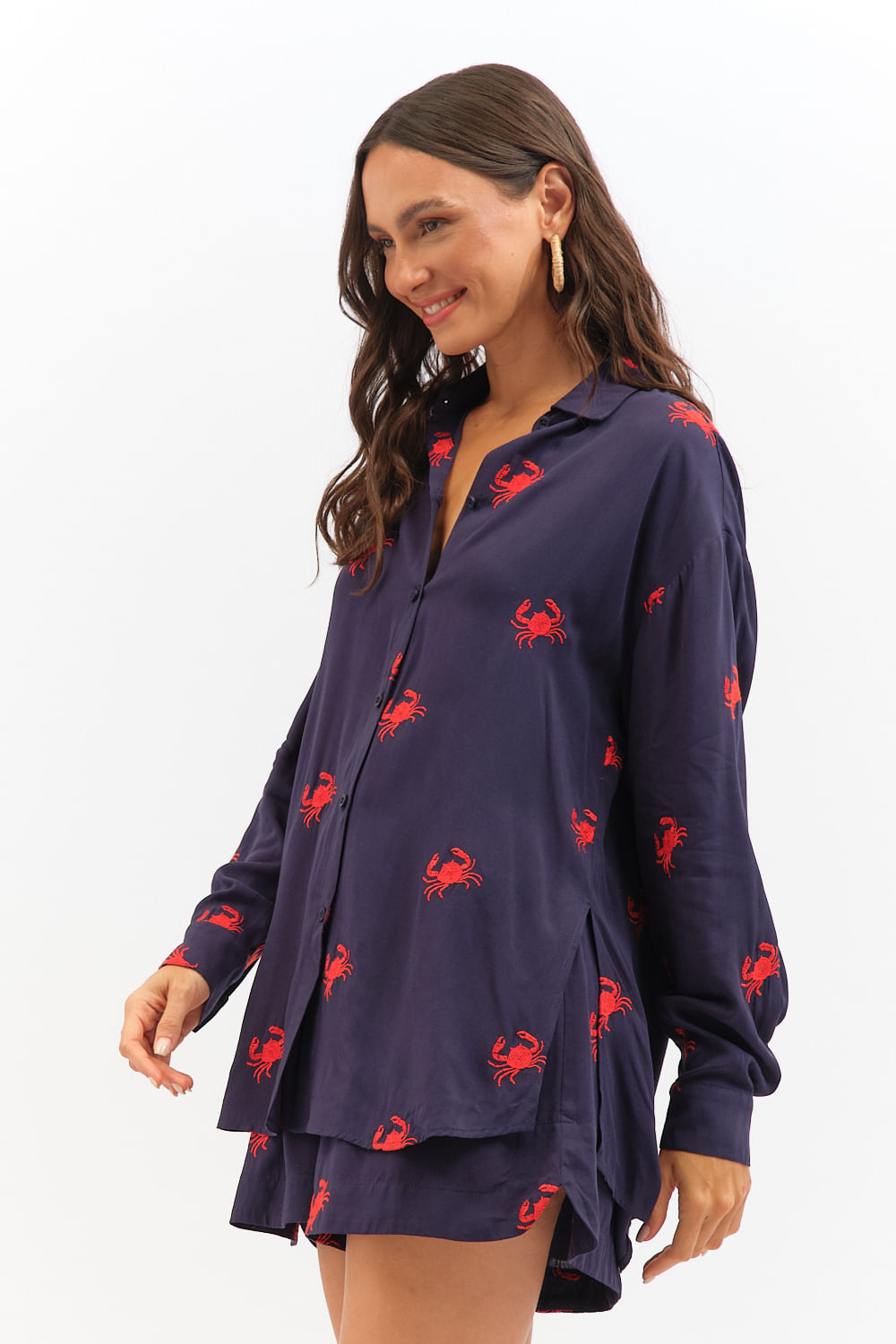 Camisa Caranguejo Bordado - Azul