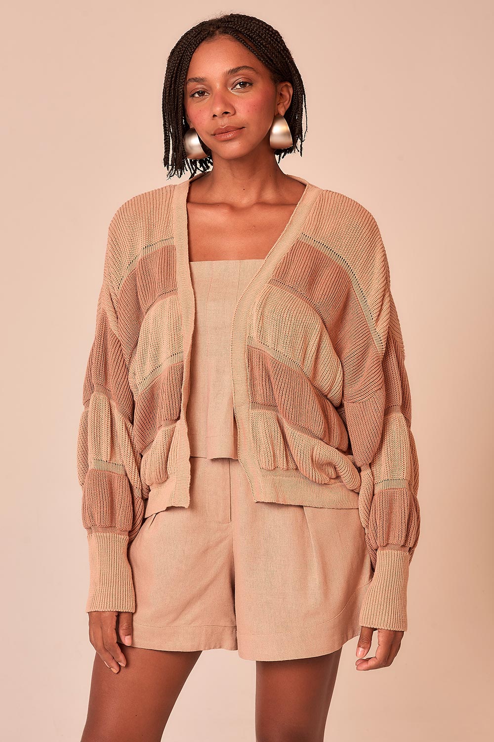 Cardigan Listras Puff - Rosa