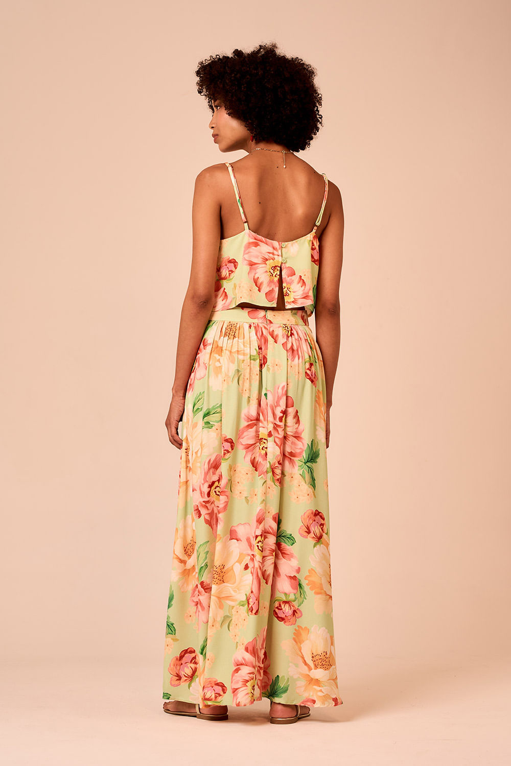 Saia Floral Napoli possui caimento amplo e cintura marcada pelo zíper nas costas. A saia cropped rodada tem movimento fluido e leve. Uma peça que se movimenta com o corpo a cada passo.