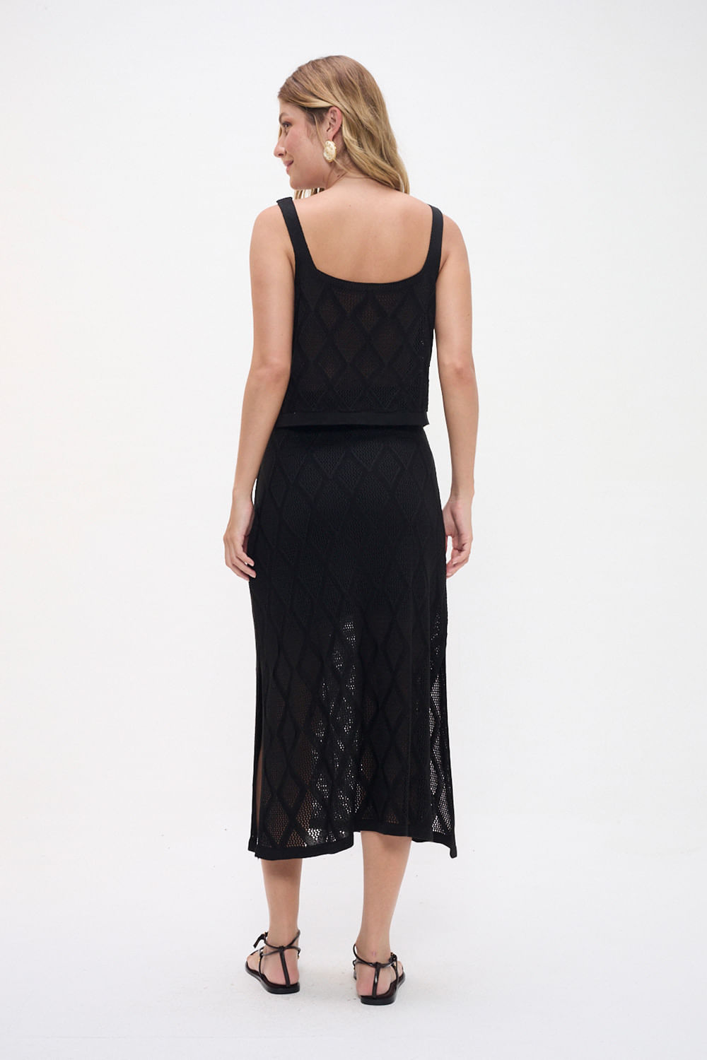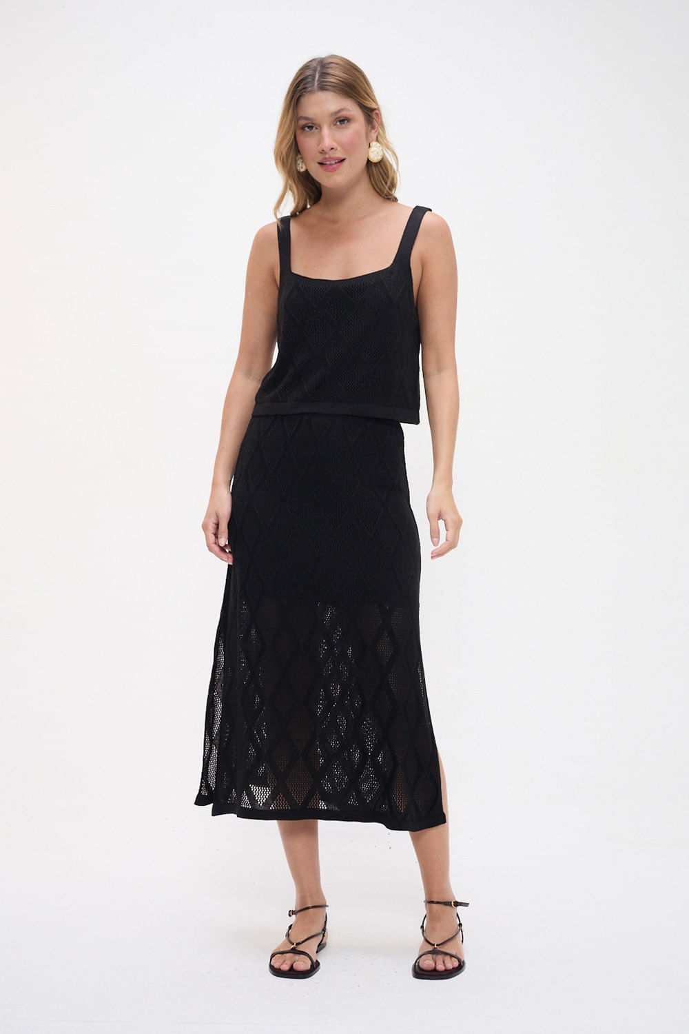 Saia Tricot Encanto traz o modelo midi godê realçando o movimento com seu caimento fluido e cintura marcada. O zíper posterior mantém o acabamento delicado e elegante, ideal para compor looks femininos e versáteis.