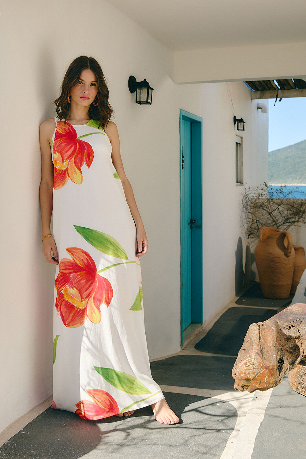 Vestido Cropped Belle traz volume em modelagem ampla com cava nadador deslocada. Acompanha top interno com amarração estilo biquíni, criando sobreposição moderna e descomplicada.