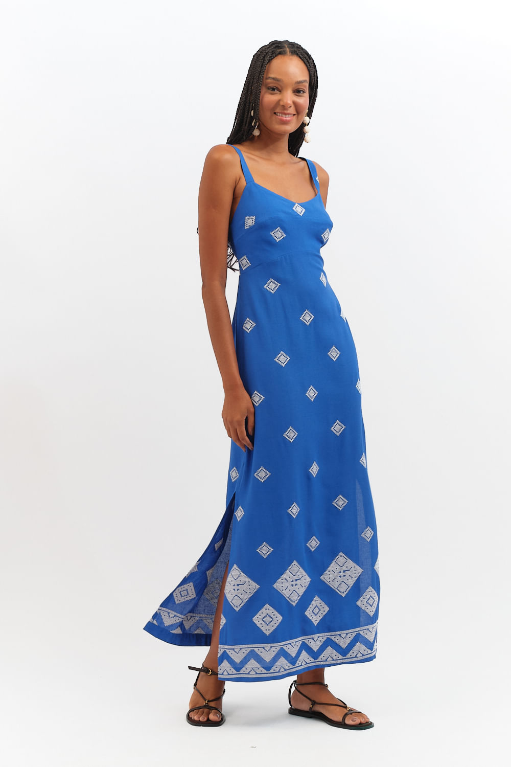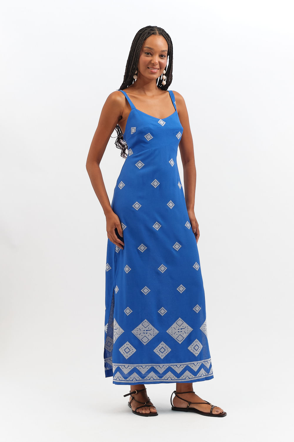 ShopNovidadesVestidosVestidosVestido Cropped Bordado Geometrico - Azul Gruta