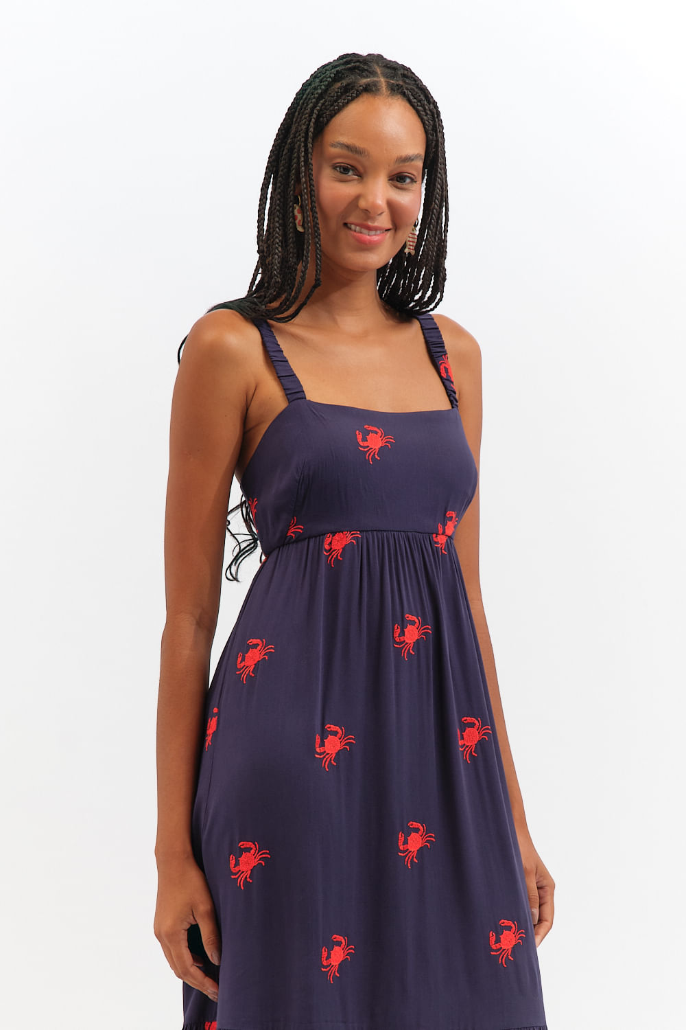 Vestido Cropped Caranguejo Bordado - Azul
