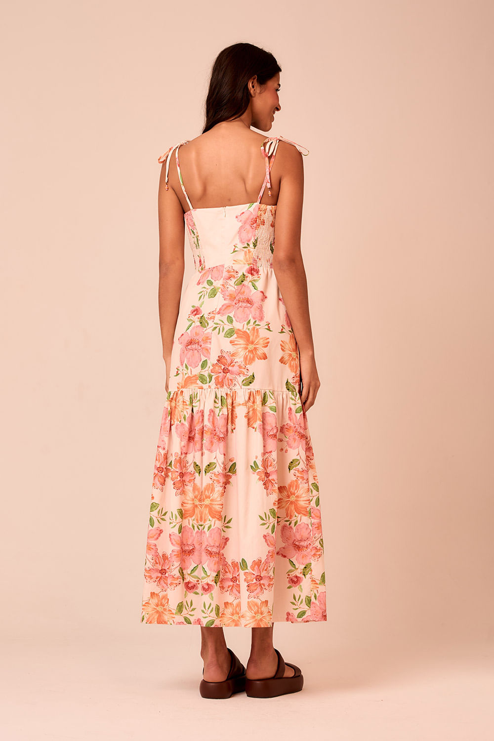 Vestido Cropped Corselet Dolce Vita possui busto em corselet, alça com amarração e acabamento com ponteira personalizada. A saia com recorte maria reforça a fluidez, pensado para quem vive o presente com suavidade.