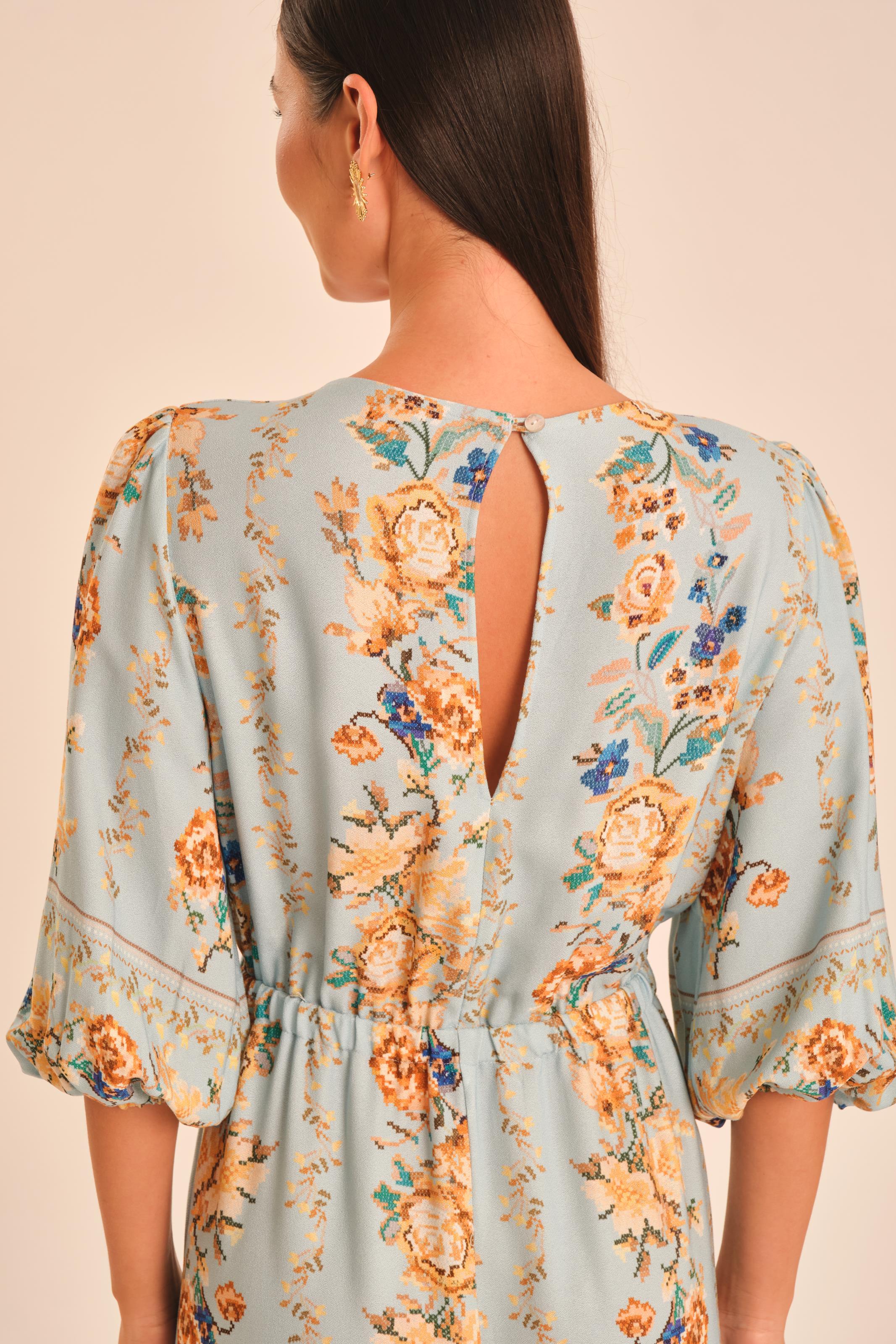 Vestido Cropped Floral Ponto Cruz - Estampado