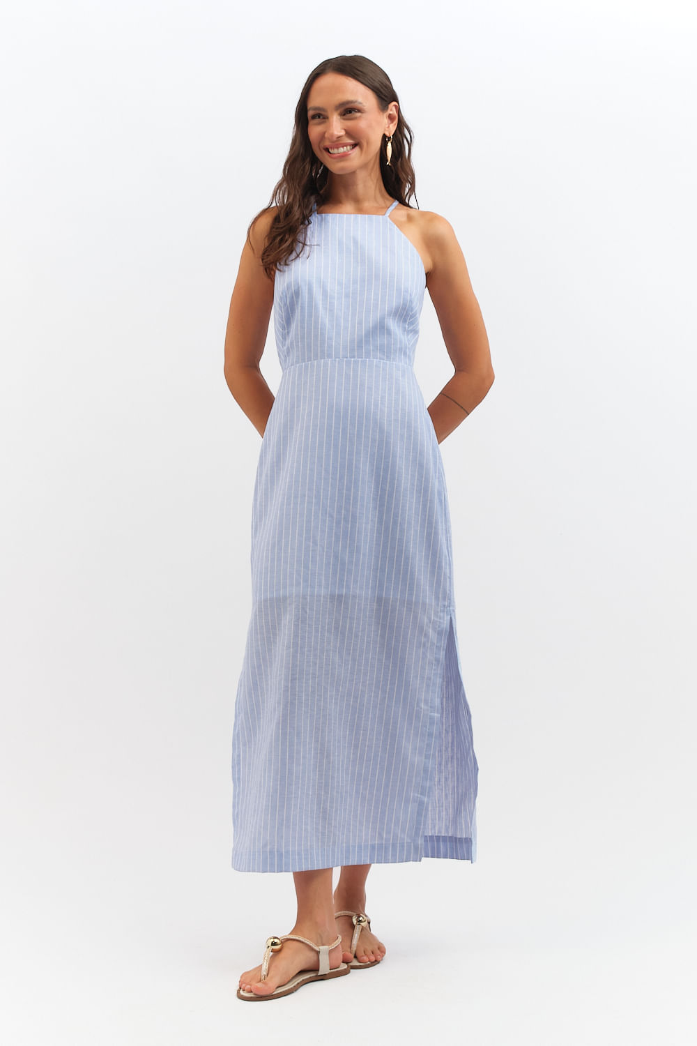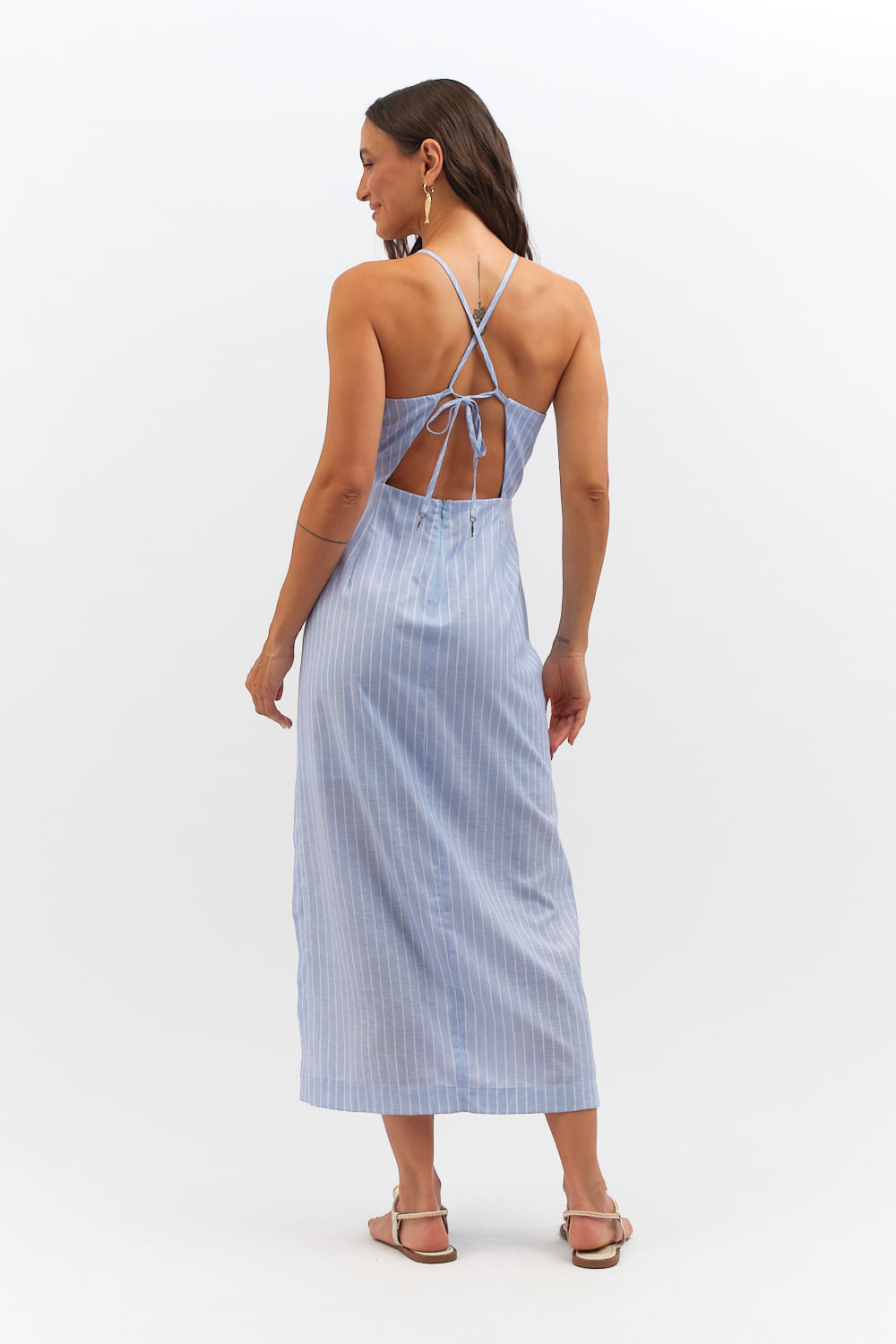 Vestido Cropped Listras Sardenha - Azul Ceu