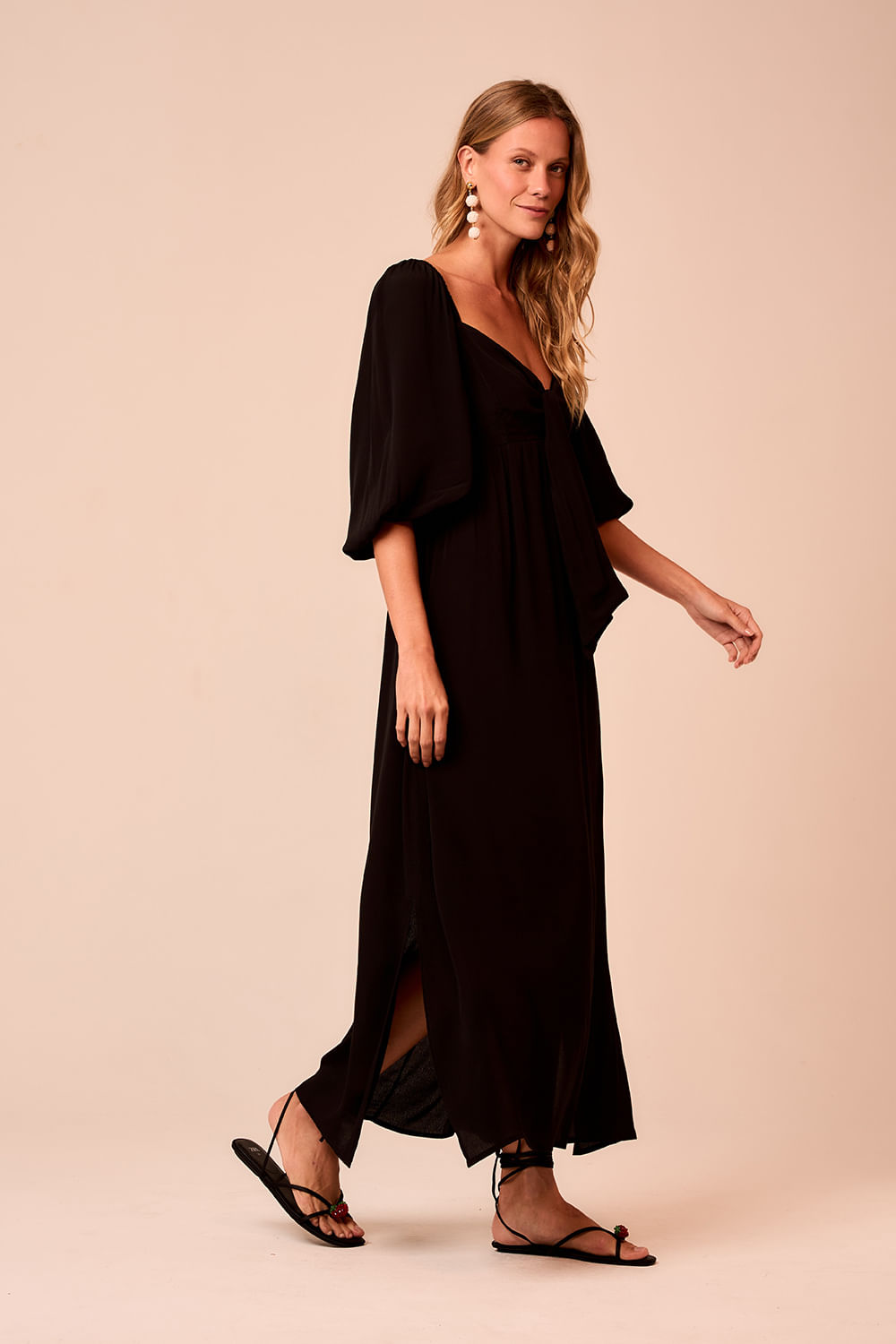 Vestido Cropped Quartzo possui manga bufante, elástico no punho, amarração frontal e lastex nas costas trazendo ajuste e feminilidade ao modelo.